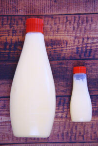 Da wir japanisch kochen und uns natürlich der authentische japanische Geschmack interessiert, verwenden wir so oft es möglich ist auch orginal japanische Zutaten. Wie sieht es also aus mit der Mayonnaise. Die japanische Mayonnaise wird im Vergleich zur europäischen Mayonnaise nur aus dem Eigelb und nicht dem Eiweiß hergestellt. Zusammen mit Sojaöl und Gewürzen wie z.B. Essig, Senfpulver, Salz und Zucker entwickelt sich auch ein etwas anderer Geschmack. Sie ist deutlich würziger, säuerlicher und man sagt ihr auch mehr Umami Geschmack nach. Die in Japan bekannteste Mayonnaise ist die Kewpie Mayonnaise, die auch in Deutschland erhältlich ist. Die kleiner Flasche auf dem Foto haben wir allerdings aus Japan mitgebracht. Dort gibt es sie in den überall vorhandenen Convenience Stores. Sehr praktisch für unterwegs 🙂