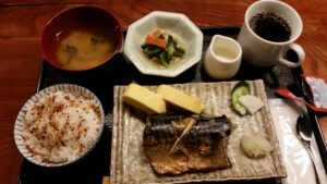 Bei einem Japanbesuch sollte eine Übernachtung in einem traditionellem Hotel – einem Ryokan – nicht fehlen. In einem Ryokan gehört ein Frühstück meistens dazu. Neben Makrele, Natto und anderen „Leckereien“ wird hier auch Miso-Suppe serviert. Hier ein Foto aus unserem ersten Japan-Besuch in 2017. Dieses Frühstück wurde uns in einem Ryokan in Kyoto serviert:
